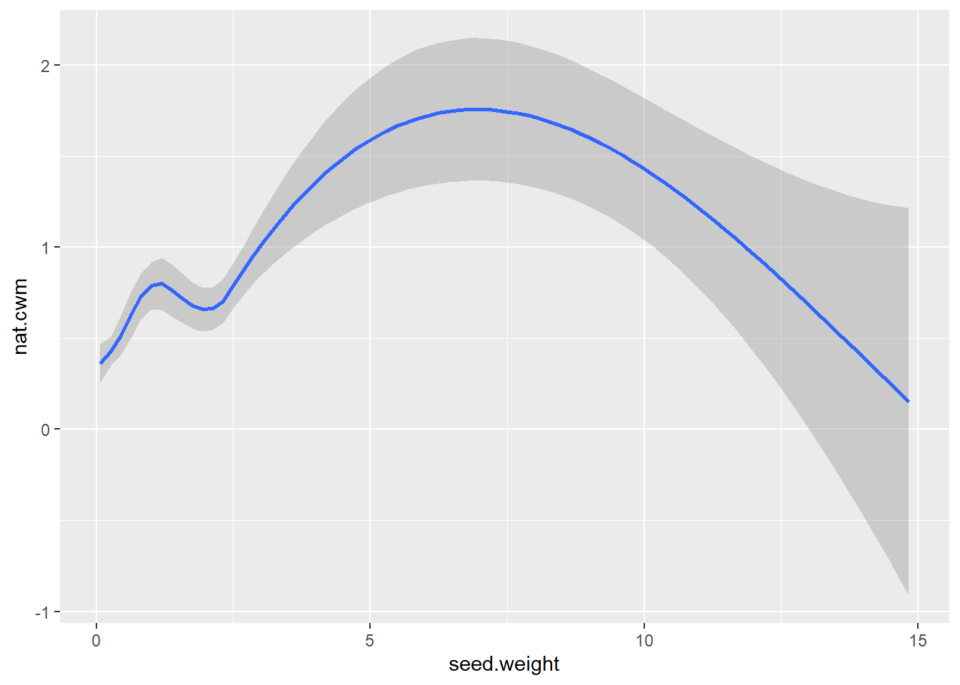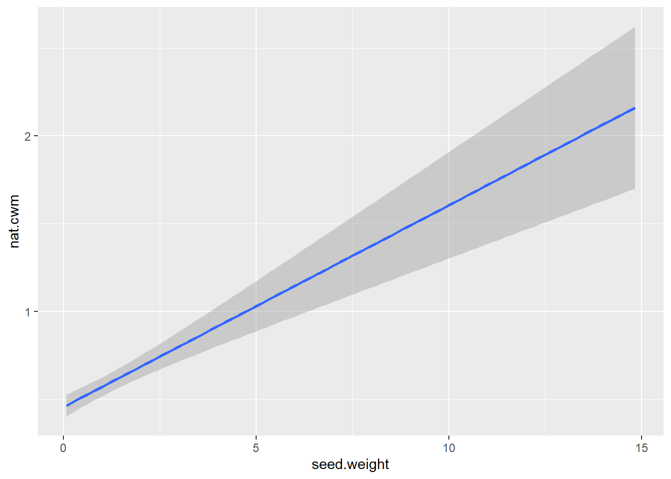 data: plt.ag$seed.weight and plt.ag$nat.cwm