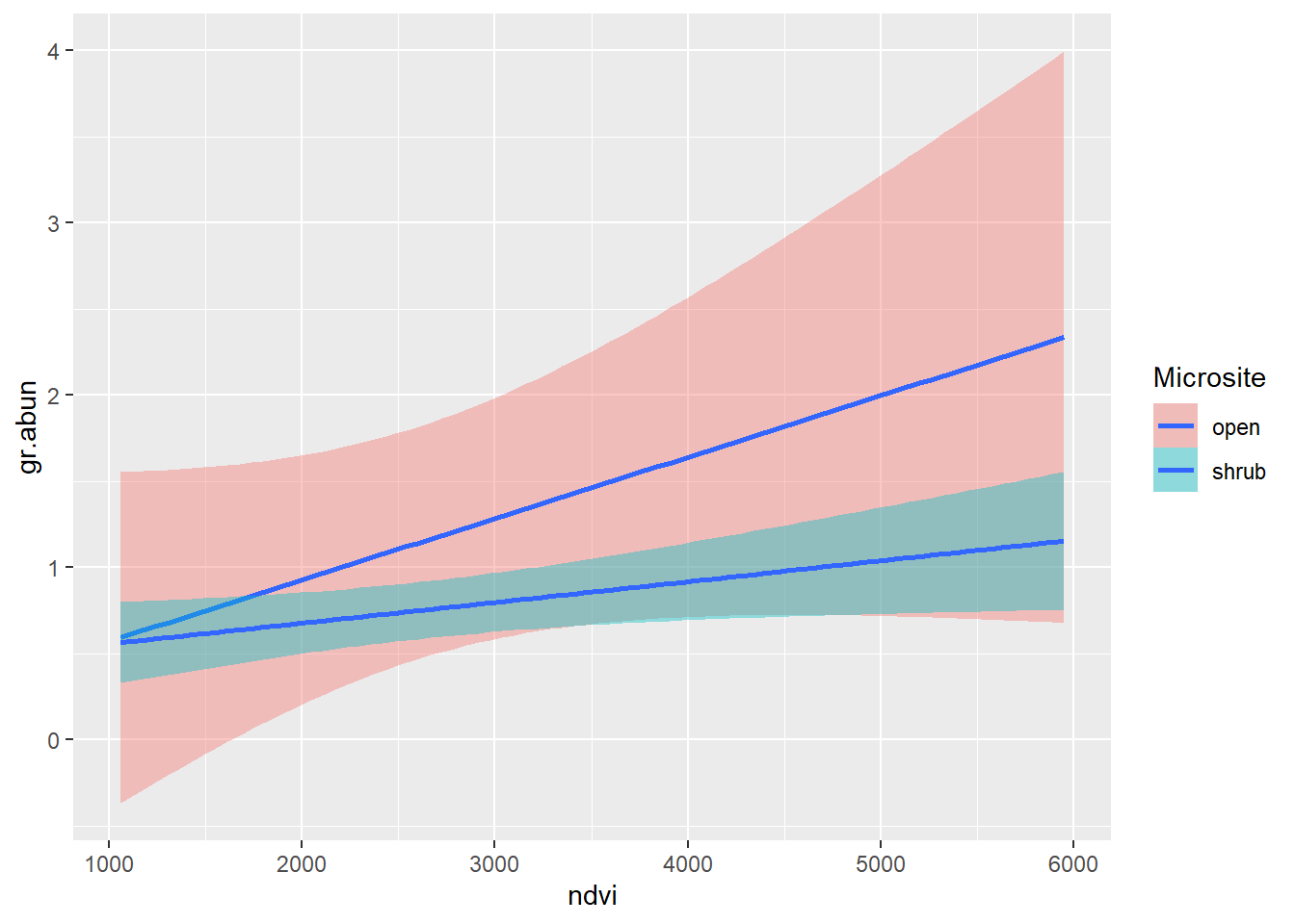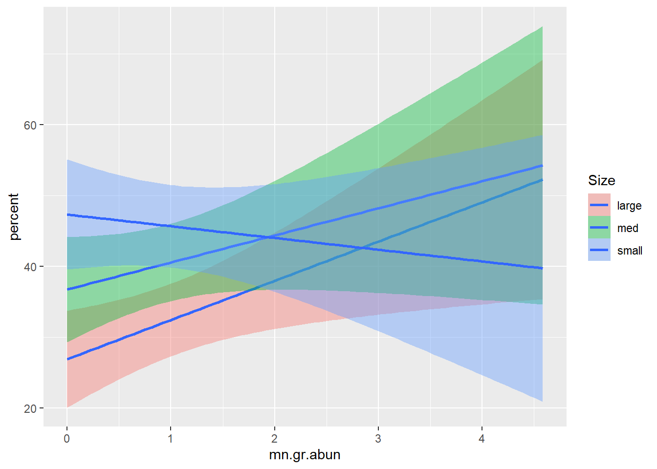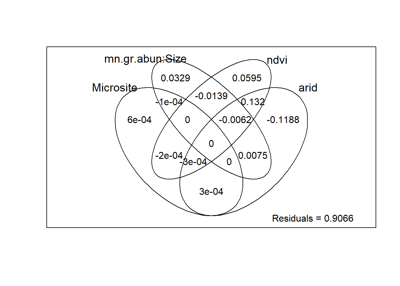 Formula: percent ~ ndvi + Microsite + Size * gr.webers + mn.gr.abun +