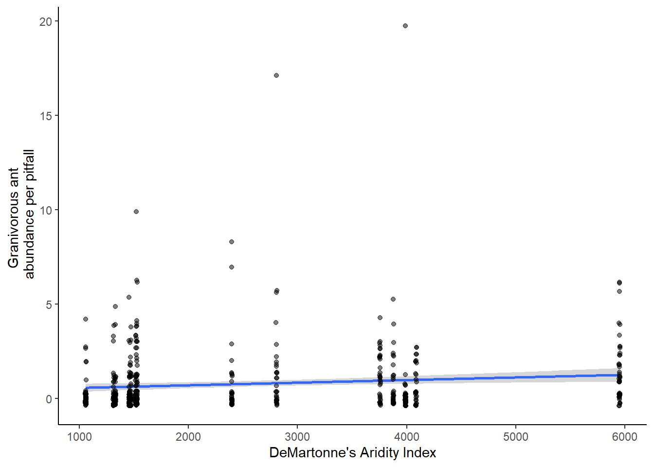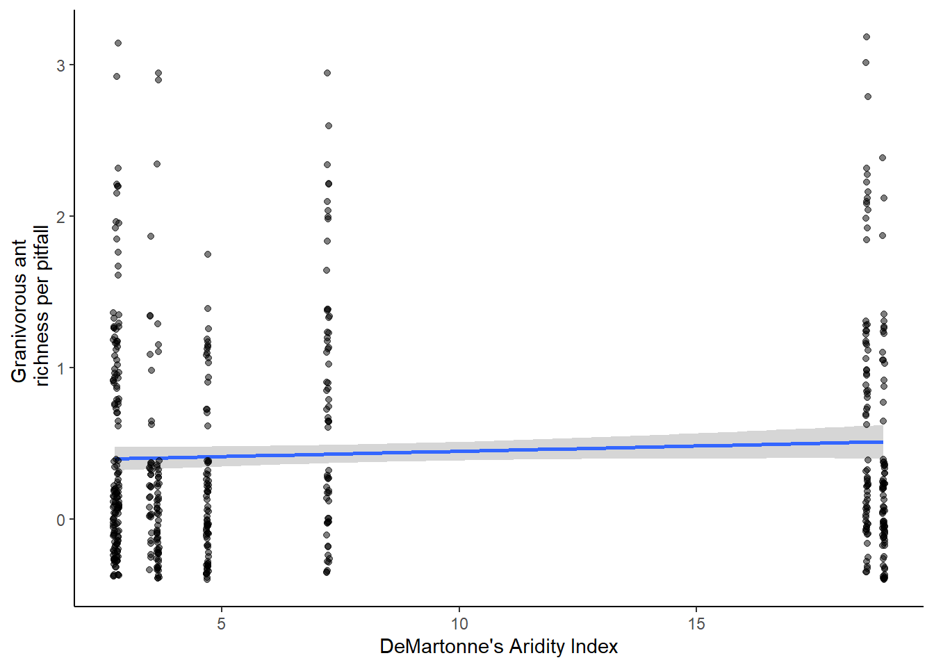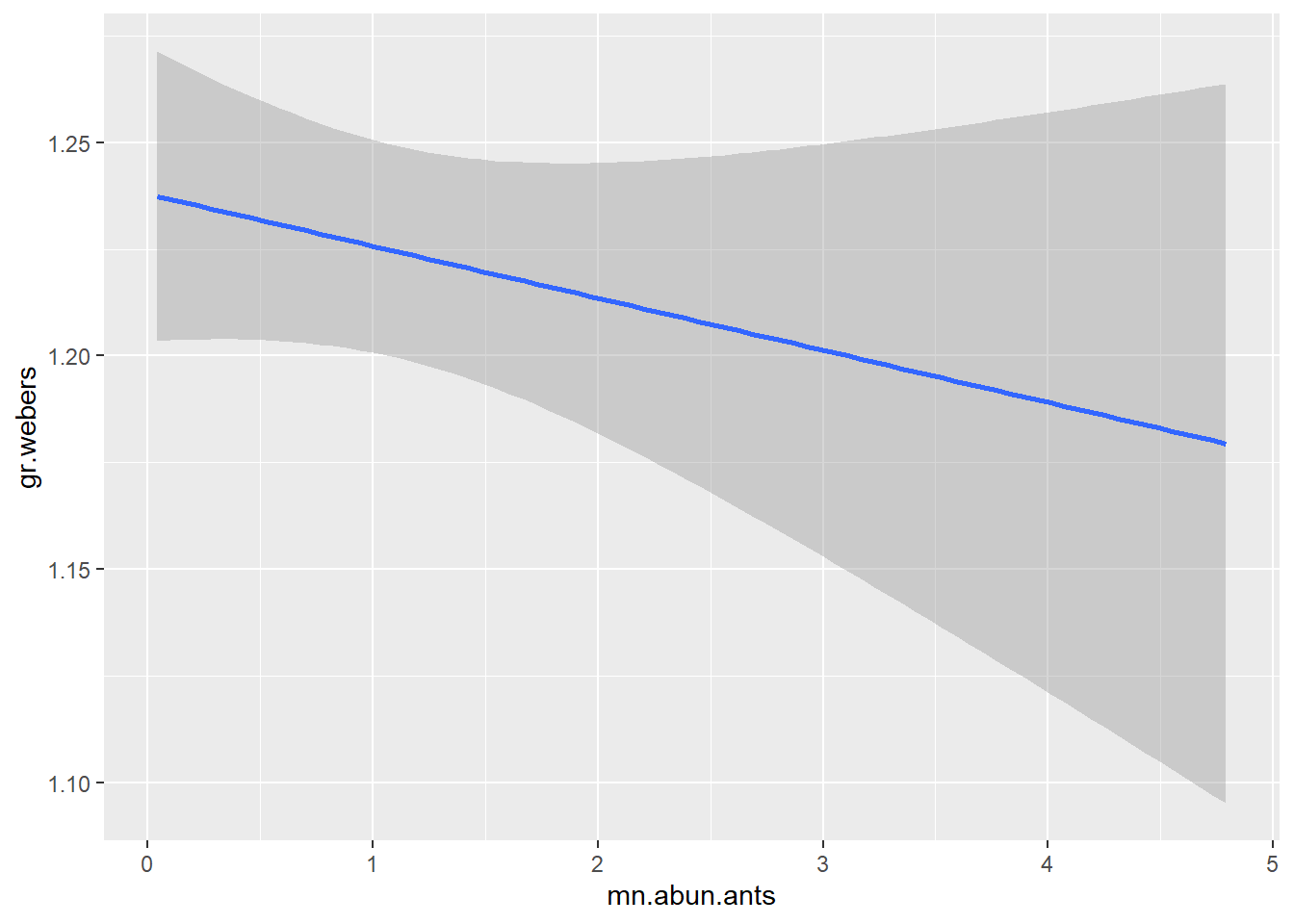 #need to filter out species to just the granivoresgtraits <-read.csv("Raw Data/anttraits.csv")gtraits <-mutate(gtraits, r.mand = mandible/webers)gtraits <- gtraits %>%group_by(site, ant.species) %>%summarise(r.mand =mean(r.mand), webers =mean(webers))