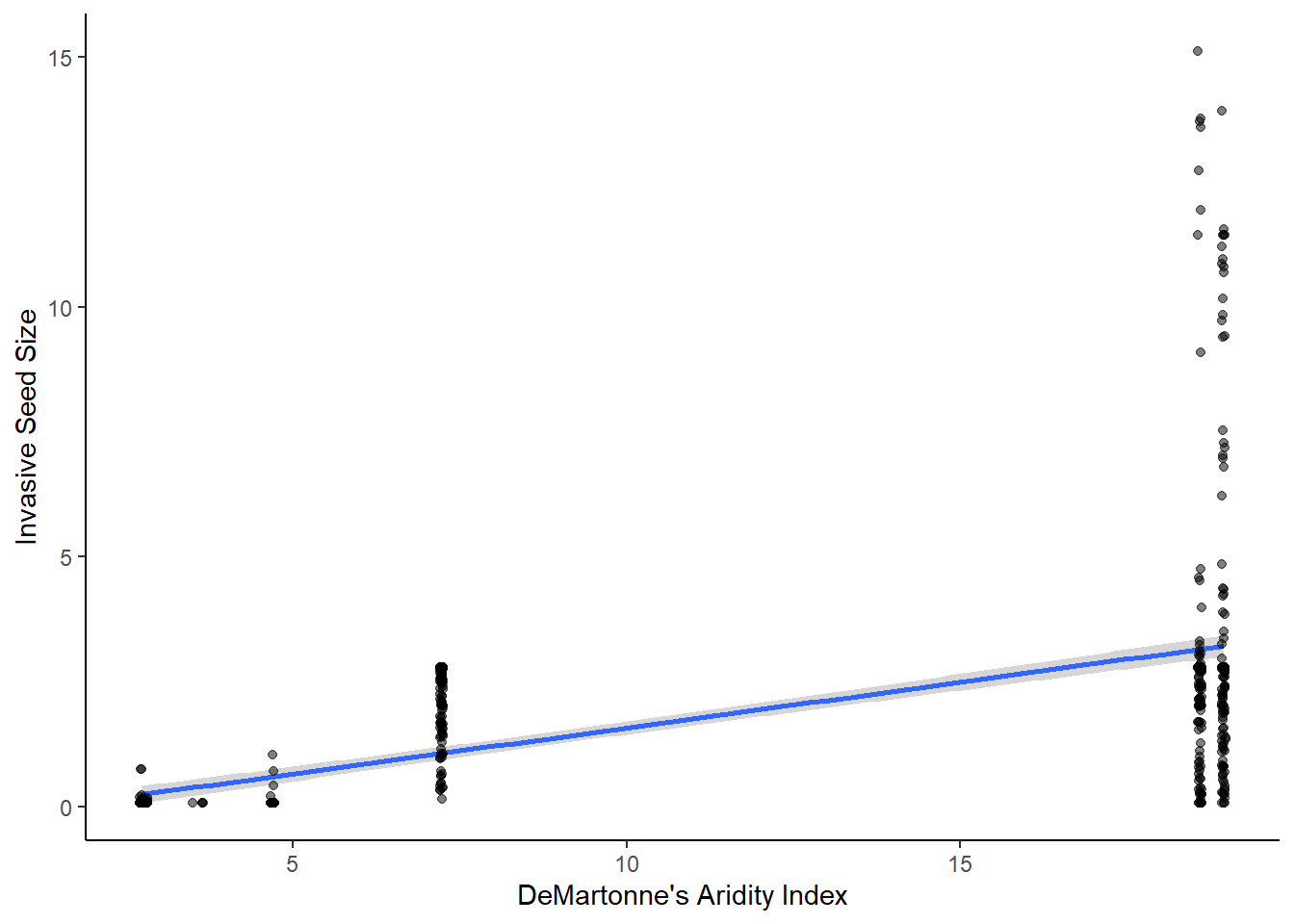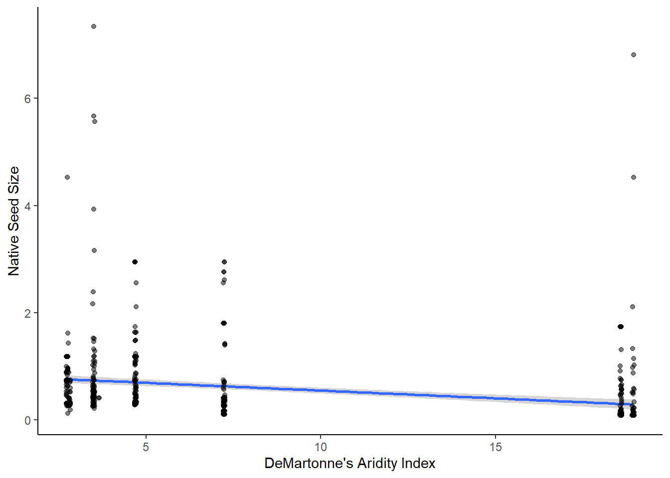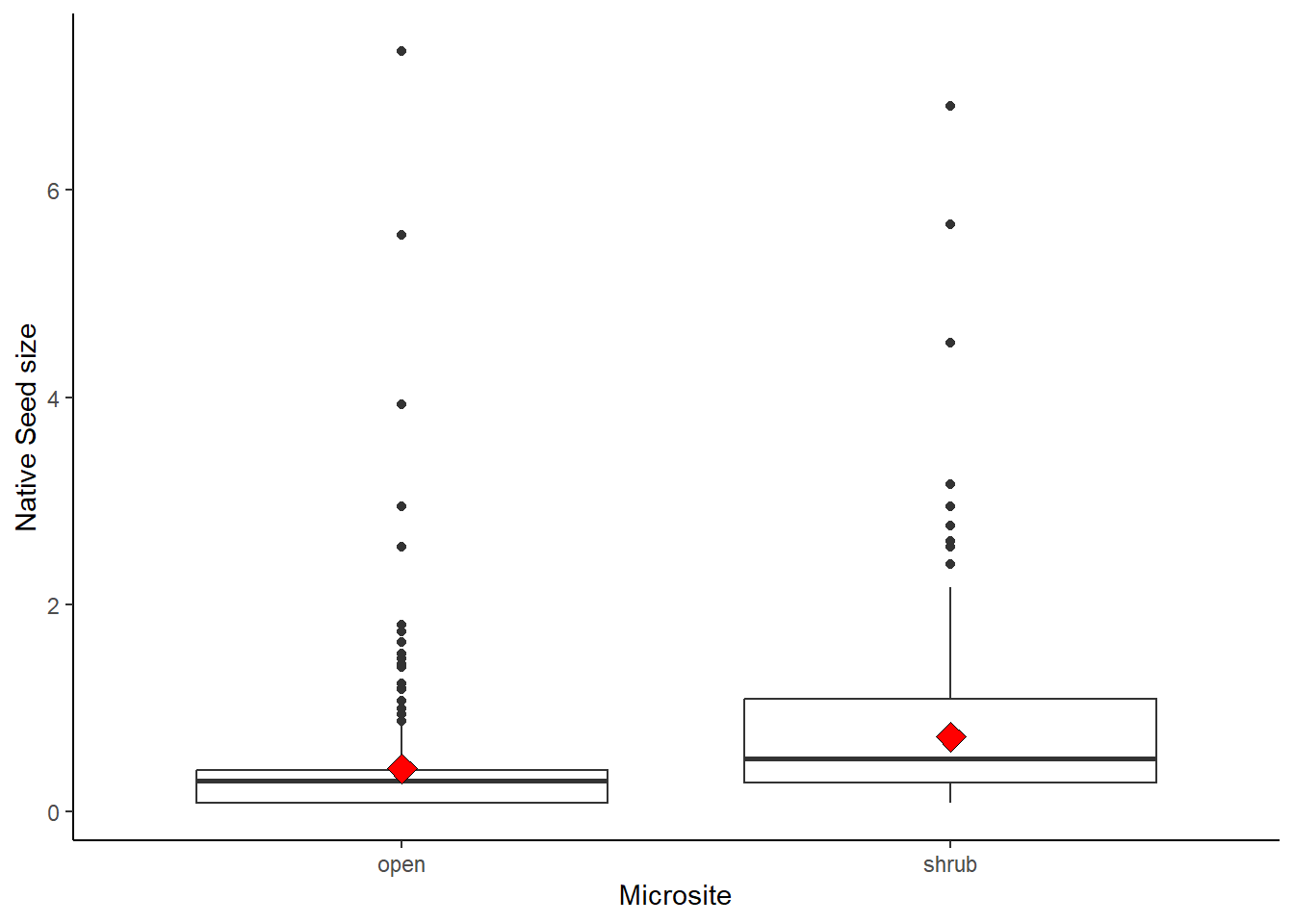 df.subset$cwm.seedweight <- func.seeds$CWMdf.subset$uniID <- sampleIDscwm <-cbind(df.subset$uniID, df.subset$cwm.seedweight)cwm <-rename(cwm, uniID ='df.subset$uniID')#join to larger dataframeenv <-left_join(env, cwm, by ="uniID")#microsite level by provence#make a vector of each set of species by provenceprov <-filter(prov, species !="Ambrosia.salsola")inv <-filter(prov, prov =="invasive")nat <-filter(prov, prov =="native")invnames <- inv$speciesptraits.inv <-filter(ptraits, row.names(ptraits) %in% invnames)invnames <-append(invnames, "uniID")df.subset <- comm[, names.use]df.subset.inv <- df.subsetdf.inv <- df.subset.inv[, invnames]df.inv <- df.inv%>%filter(rowSums(across(where(is.numeric)))!=0)uniID <- df.inv$uniIDdf.inv <-select(df.inv, -uniID)row.names(df.inv) <- uniID