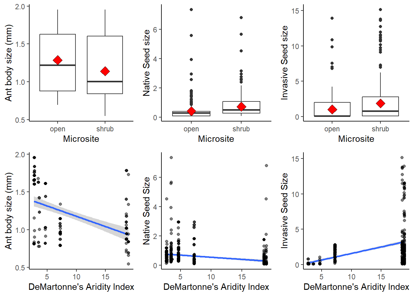 cwmants <-cbind(tr.names, func.ants$CWM)cwmants$tr.names <-gsub("Cuyama 1", "Cuyama1", cwmants$tr.names)cwmants$tr.names <-gsub("Cuyama 2", "Cuyama2", cwmants$tr.names)#make the labels match and join back to trap datacwmants <-separate(cwmants, col =1, into =c("year", "season", "Site", "Label"), sep =" ")